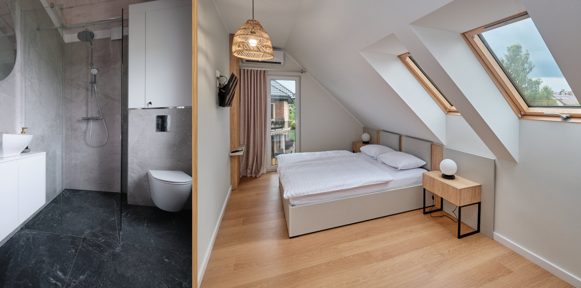 Każdy z apartamentów ma powierzchnię 75m2 i jest wyposażony między innymi w: